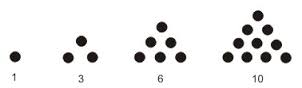 3. Pola bilangan segitiga adalah 1, 3, 6, 10….